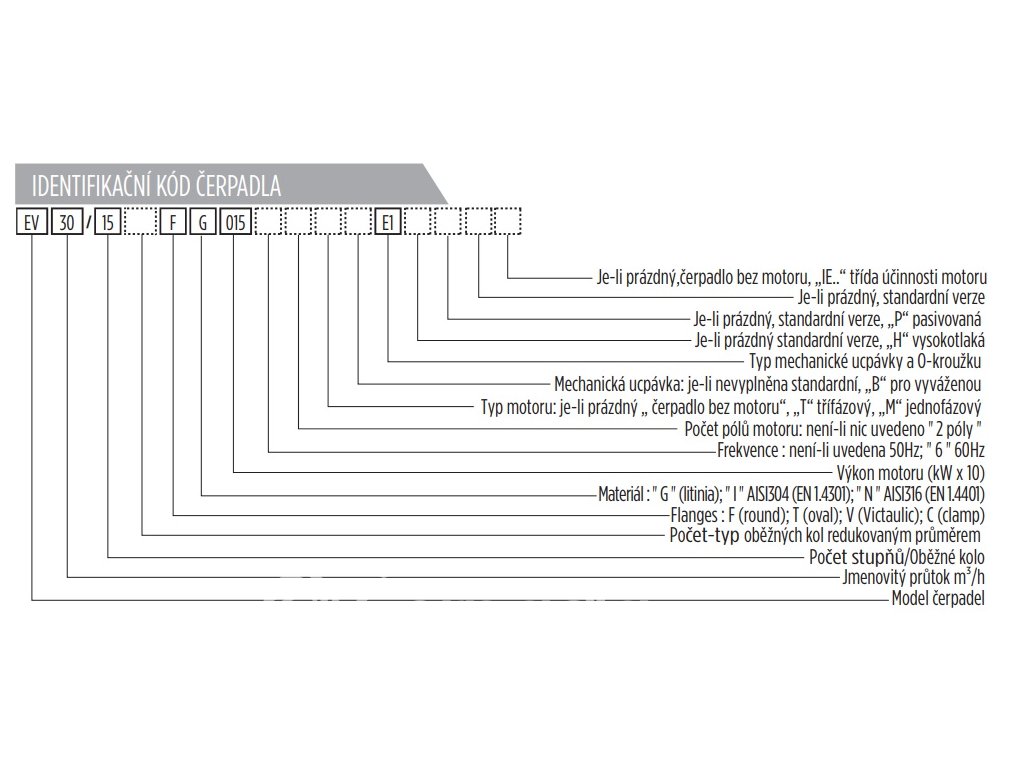 - Standardní mechanická ucpávka (EN 12756 ex DIN 24960) s certifikací WRAS; vyvážená verze pro EV 30-45-65-95