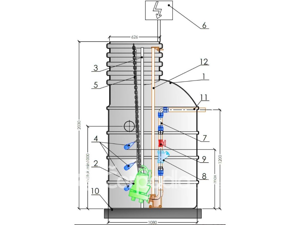 Čerpací jímka 1 SE SEG je určena pro čerpání splaškových a dešťových vod z rodinných domů, rekreačních objektů, obytných celků, průmyslových provozů, apod.. Čerpací šachta je vyrobena z materiálu PEHD a je osazena ponorným odstředivým čerpadlem Grundfos SEG.40 s řezacím zařízením které je řízeno externími plovákovými spínači. Čerpadlo je vybaveno kabelem, který je zakončen v rozvaděči. Čerpací jímku 1 SE SEG je možné vybavit dalším příslušenstvím.