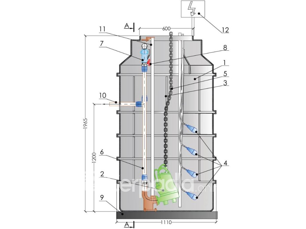 Čerpací jímka 2 SE SEG je určena pro čerpání splaškových a dešťových vod z rodinných domů, rekreačních objektů, obytných celků, průmyslových provozů, apod.. Čerpací šachta je vyrobena z materiálu PEHD a je osazena ponorným odstředivým čerpadlem Grundfos SEG.40 s řezacím zařízením které je řízeno externími plovákovými spínači. Čerpadlo je vybaveno 10m kabelem, který je zakončen v rozvaděči. Čerpací jímku 2 SE SEG je možné vybavit dalším příslušenstvím.