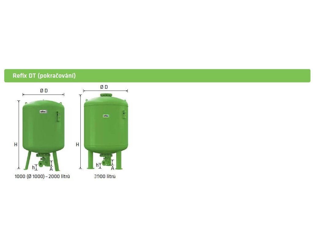 Nádoby 'Refix DT' jsou průtočné expanzní nádoby pro rozvody, čerpací stanice a ohřev pitné vody.